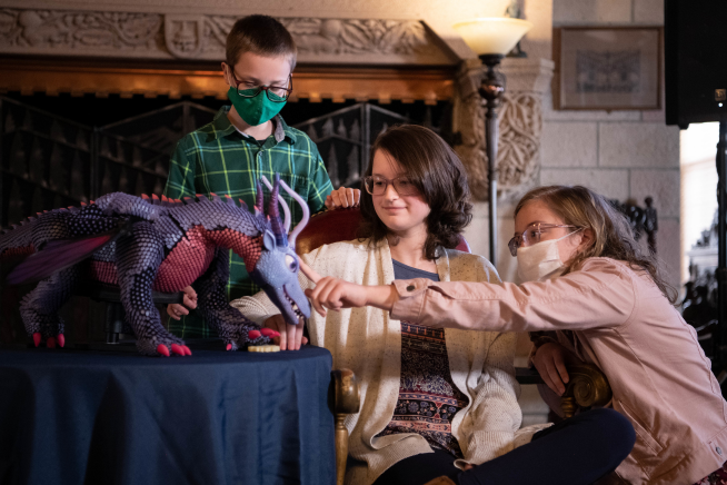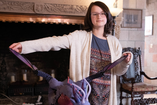 Belle Cress, age 14, met her dragon in late March 2021. She named her dragon “Dusk” because the purple and pink scales reminded her of the colors in the Colorado sky at twilight. The dragon has electronic sensors located in its “skin” and is programmed to respond to her touch with animal-like behaviors.