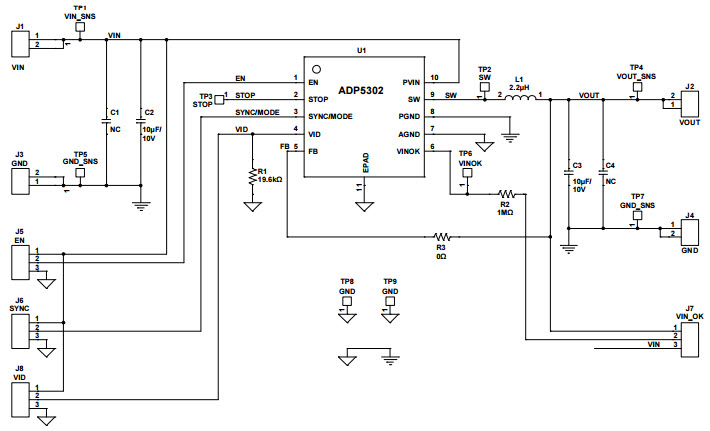 ADP5302-EVALZ, Evaluation Board Evaluating the ADP5302 Ultra Low Step-Down Regulator