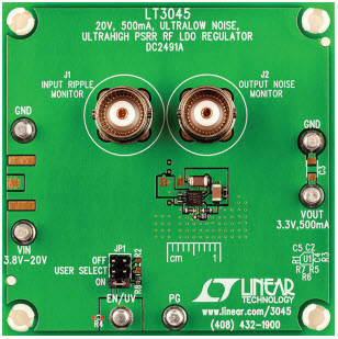 DC2491A, Demo Board based on LT3045EDD 20V, 500mA, Ultralow Noise Ultrahigh PSRR RF LDO Regulator