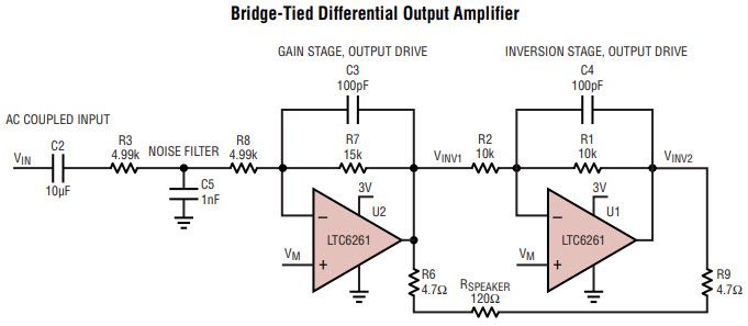 LTC6261_Typical ApplicationTypical Application for LTC6261HS6 Bridge-Tied Differential Output Op Amplifier |