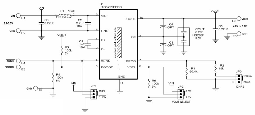 LTC3225EDDB Demo, Low Profile Regulated Dual Cell SuperCAP Charger
