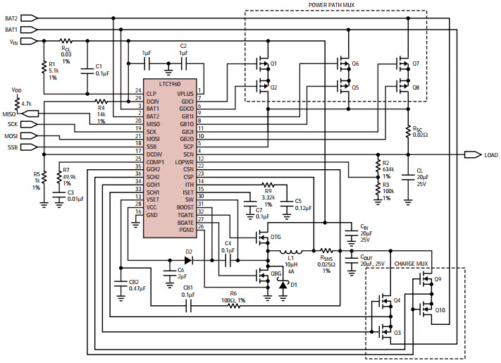 - Monolithic Dual Battery Power Manager Increases Run Time and Decreases Charge Time. In a dual parallel charge configuration, the LTC1960 does not actually control the current flowing into each individual battery. This job is handled by the batteries themselves. The capacity or Amp-Hour rating of each battery determines how the charger current is shared. This automatic steering of current is what allows both batteries to reach their full capacity points at the same time. In other words, given all other things are equal, charge termination will happen simultaneously