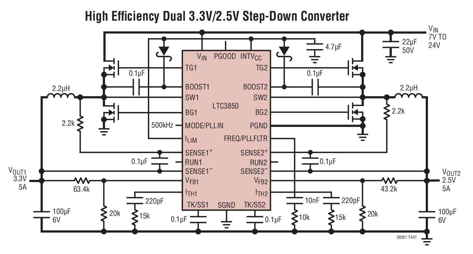- Typical Application for LTC3850 - Dual, 2-Phase Synchronous Step-Down Switching Controller
