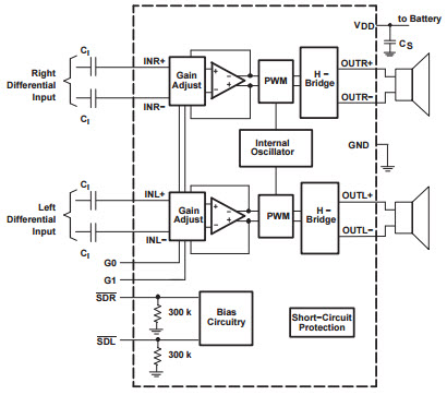 - Typical TPA2012D2 Application Schematic With Differential Input and Input Capacitors for TPA2012D2 CLASS-D Audio Amplifier