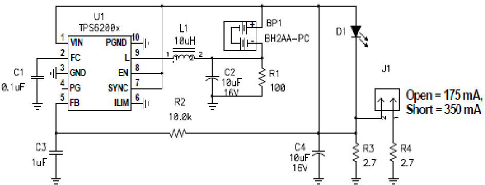 Diseño de referencia usando la pieza TPS62000 de Texas Instruments