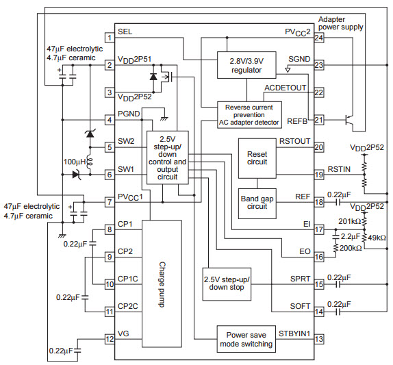 • Typical Application for the LV5051T Bi-CMOS IC for the portable CD players Power Supply IC