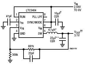 LTC3404, 3.1V/600mA Step-Down Regulator