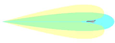 Figure 4: Separate beams of the monopulse radar (yellow) on either side of the primary radar target area (blue)