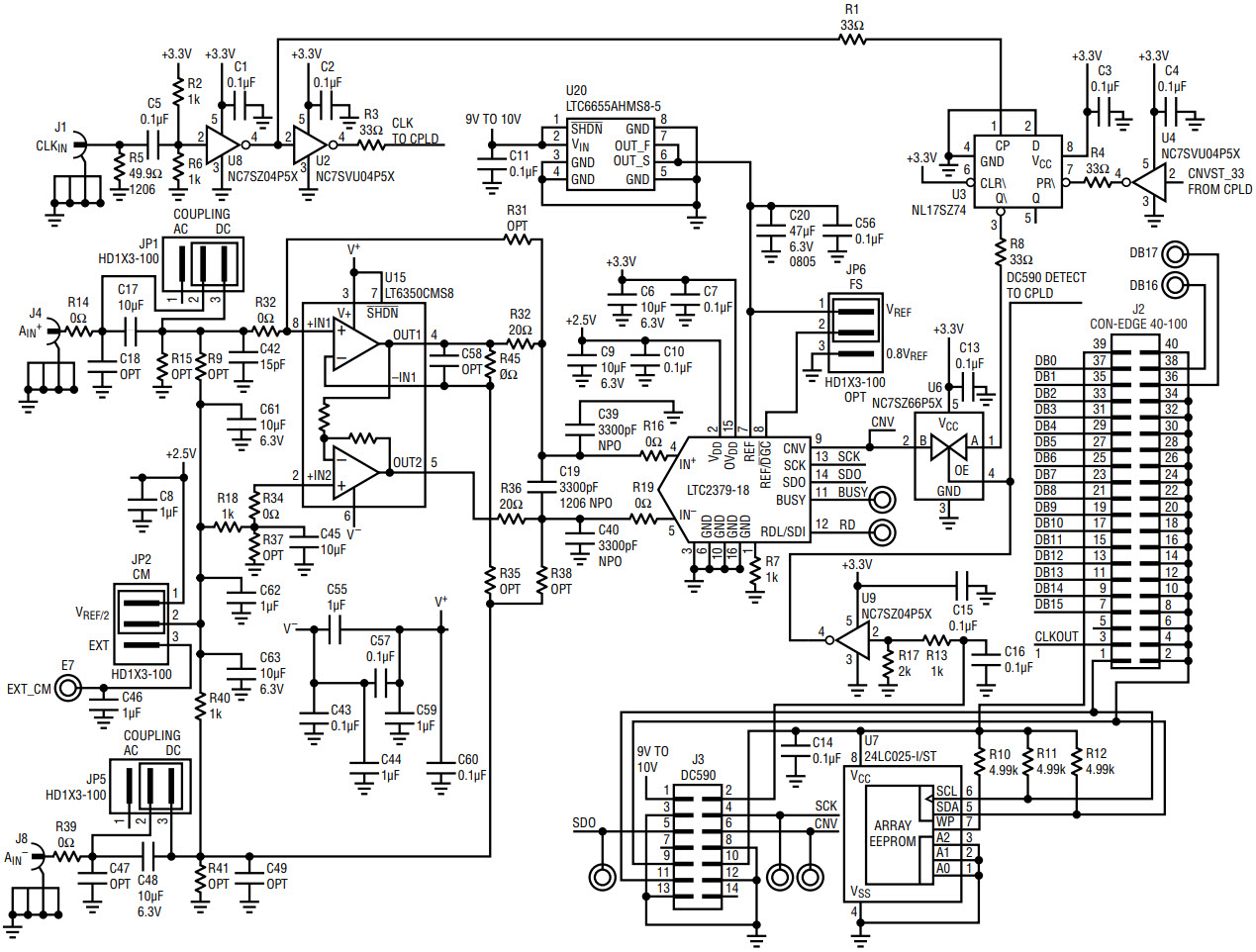 LTC2389-18_Typical ApplicationTypical Application Using LTC2389ILX-18, 18-Bit, 2.5Msps SAR ADC |
