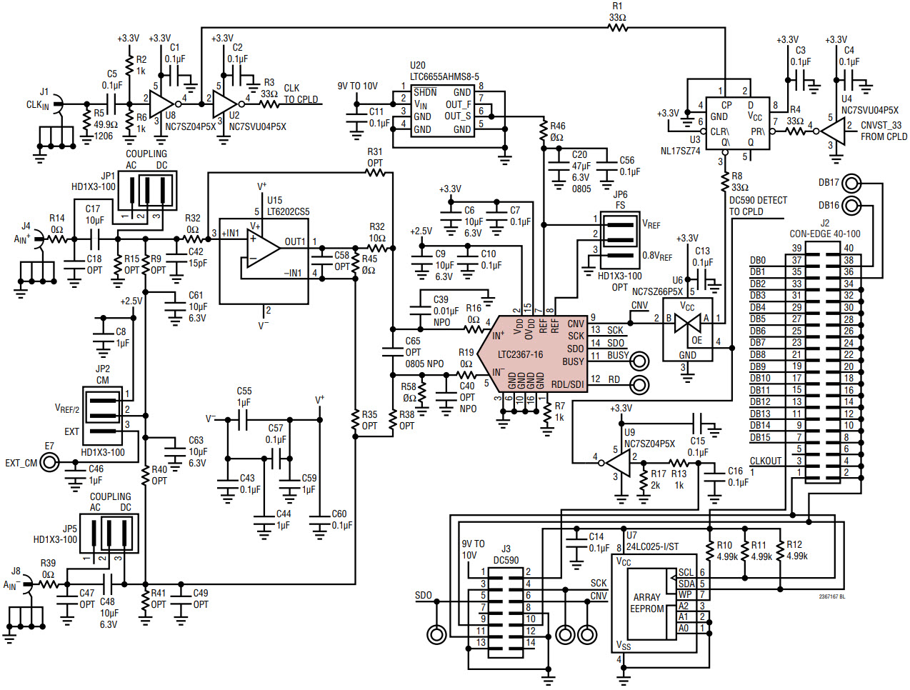 LTC2367-16_Typical ApplicationTypical Application Using LTC2367CDE-16, 16-Bit, 500ksps SAR ADC |