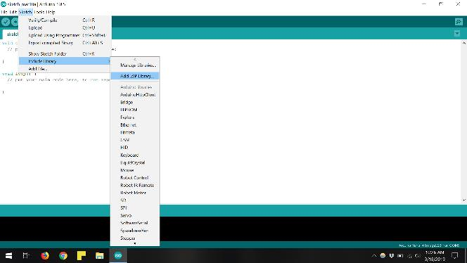 2. Once extracted, navigate to Sketch ==> Include Library ==> Add .ZIP Library in the Arduino IDE.