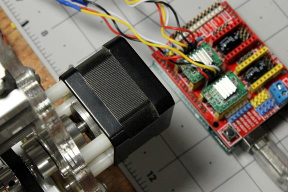 From here, you may want a better resolution than what we can achieve with the given steps/mm available. There are three jumpers under the individual stepper drivers that allow for microstepping—where the motor advances at fractions of an ordinary step—from a half step to up to one thirty-second of a step depending on the driver you use.