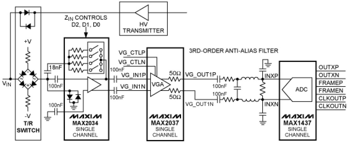 - Typical Phased Array Ultrasound-Receiver Line Up Consists of LGA, VGA, Anti-Alias Filter, and ADC