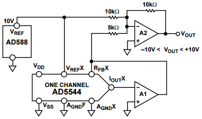 - Typical Application for AD5554 Quad, Current-Output, Serial-Input 14-Bit DAC is designed to operate from a 2.7V to 5.5V supply range