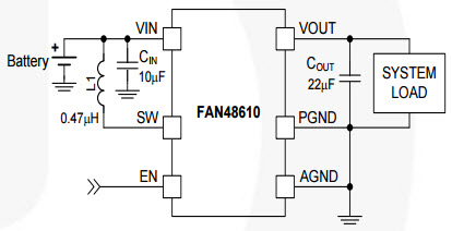 Typical Application for Fan48610 2.5 Mhz Fixed Output Synchronous Tinyboost Regulator