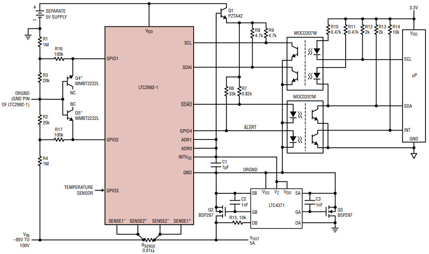 Typical Application for LTC2992IDE-1 Four Quadrant Power Monitor (10kHz I2C Interface)